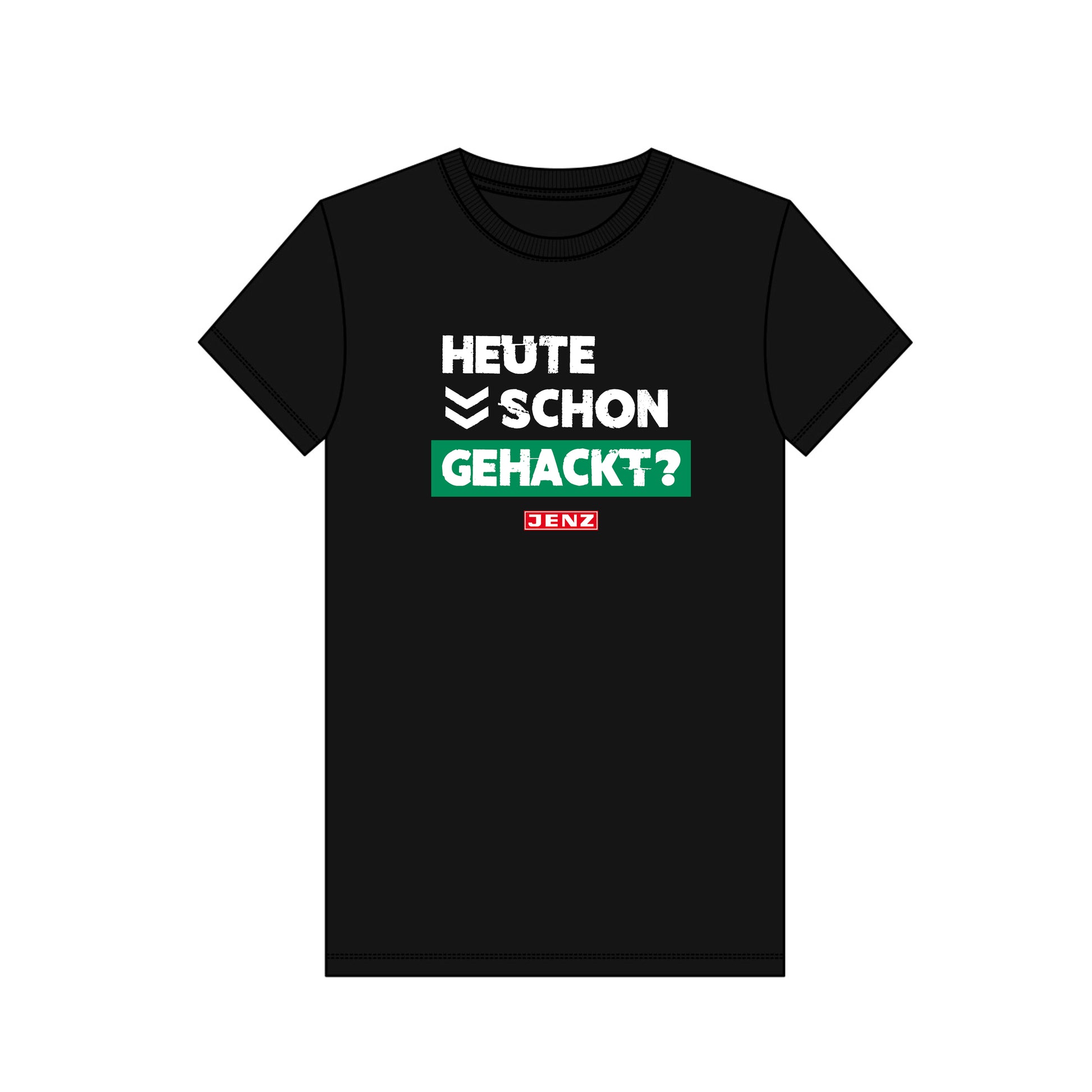 Vorne: Logo-Druck "JENZ" und Schriftzug "Heute schon gehackt?"